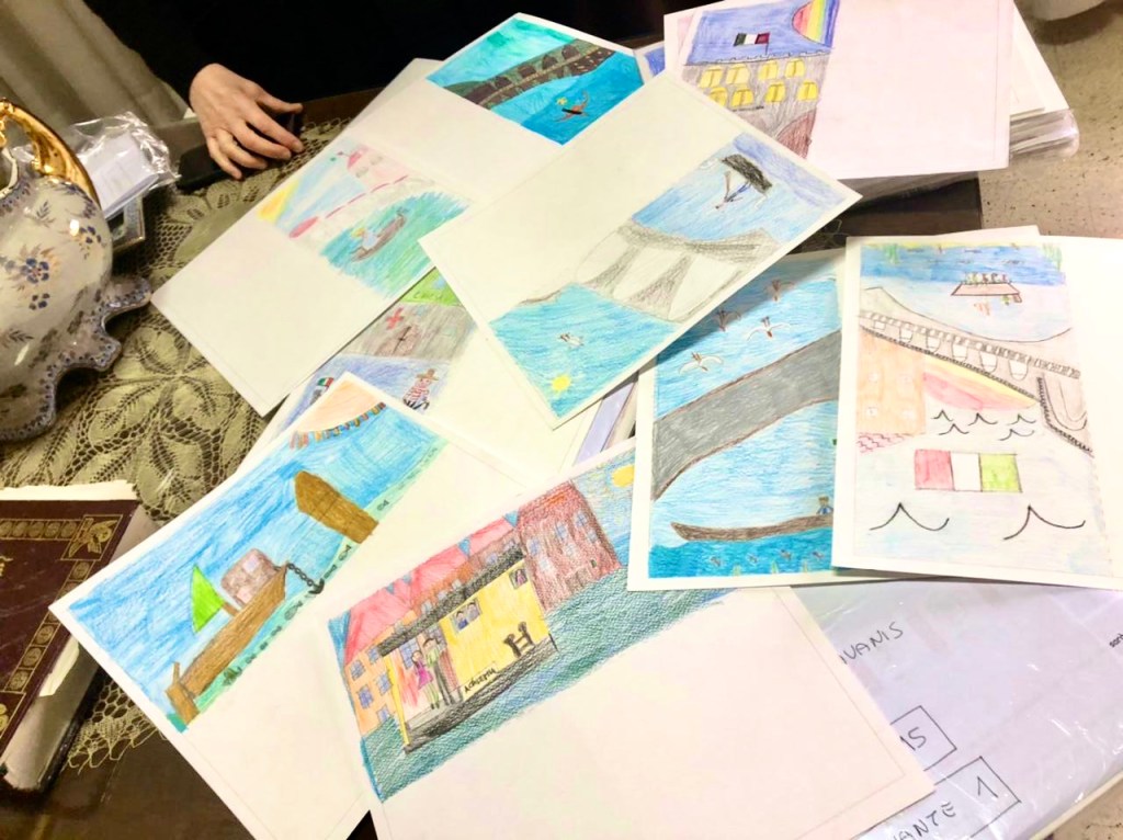 Grande emozione e gioia nello sfogliare le centinaia di elaborati giunti dall’Italia. Nel retro del foglio di carta gli alunni con le insegnanti, il bidello Dante, mamme, papà, nonni hanno scritto speciali messaggi e fatto simpatici autoritratti.