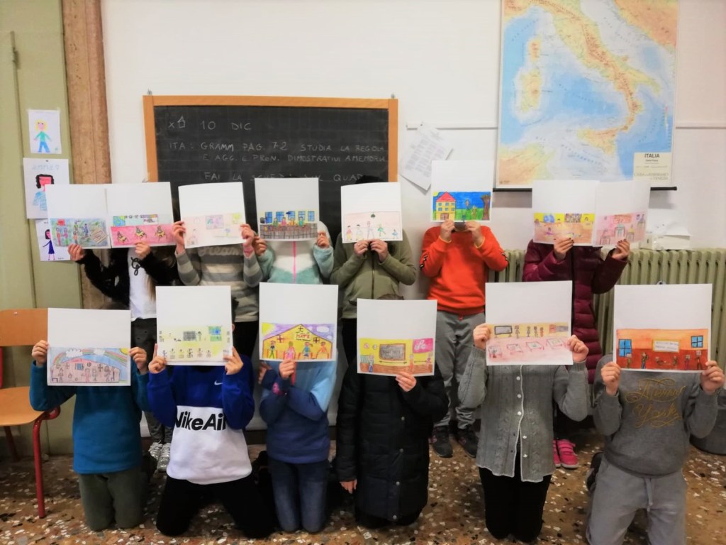 Due grandi sorrisi, tanta spontaneità e due fogli da disegno fra le mani. Gli elaborati provengono da Venezia, esattamente dalla Scuola Primaria Canal dell’Istituto Comprensivo Morosini.