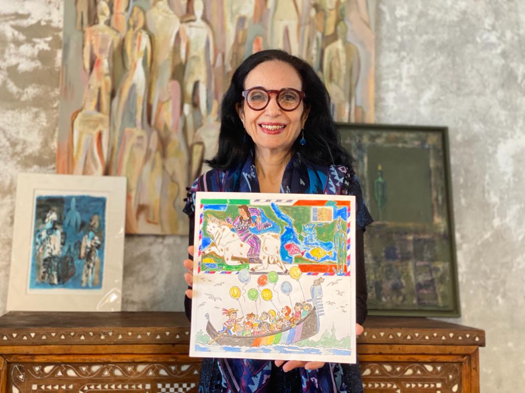 Il dipinto verrà donato a una scuola che ha partecipato al progetto educativo internazionale “Disegni a 1000 mani”, ideato da Nadia De Lazzari dell’associazione di volontariato Venezia: Pesce di Pace.