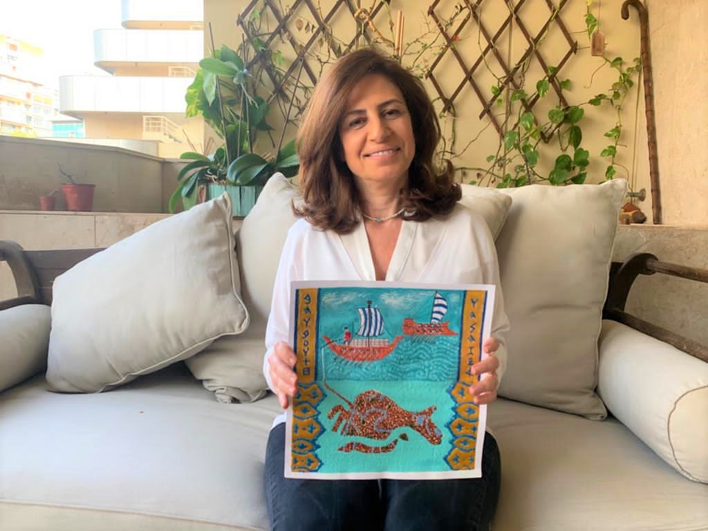 Nel retro del dipinto l’artista libanese Mona Kabbani Khater illustra in modo chiaro la sua opera soffermandosi soprattutto sul piano storico: “I Fenici sono un antico popolo originario della città di Fenicia che corrisponde al Libano. Per 2000 anni la Fenicia è stato l’anello di congiunzione tra l’Occidente e l’Oriente grazie ai marinai. I Fenici infatti oltre che abili agricoltori ed eccellenti commercianti erano grandi navigatori. Nel XIII secolo a.C. hanno anche inventato le prime lettere dell’alfabeto. Nel mio disegno ho rappresentato le navi fenicie e l’alfabeto. Un grande grazie all’artista Luigi Ballarin”.