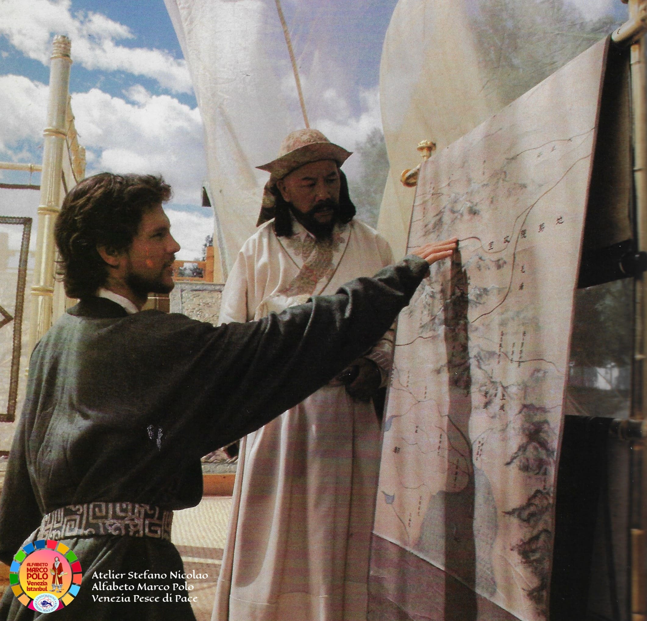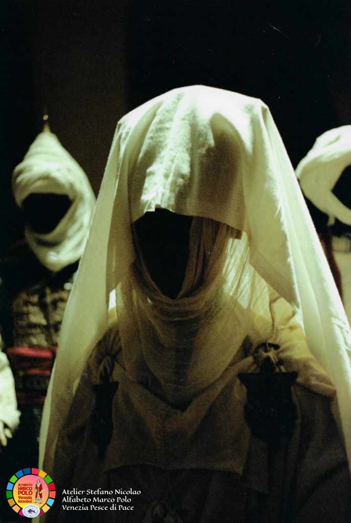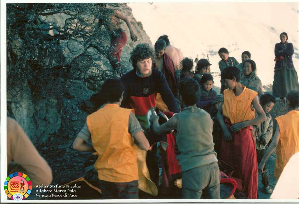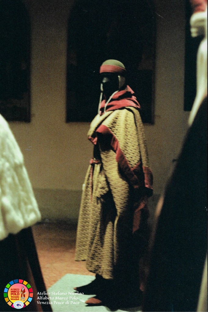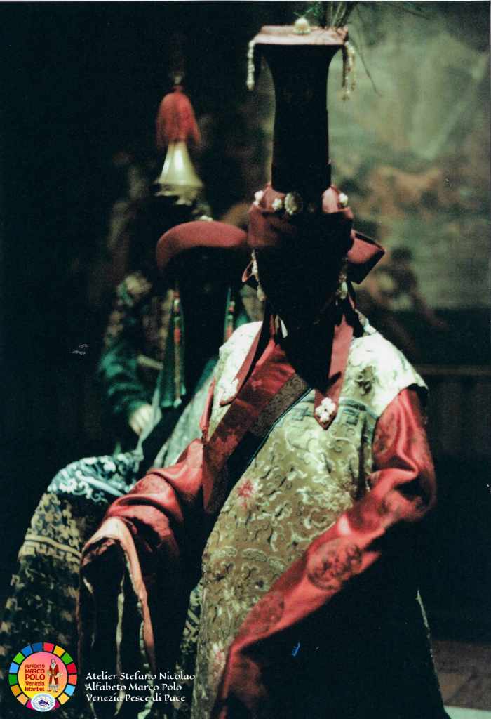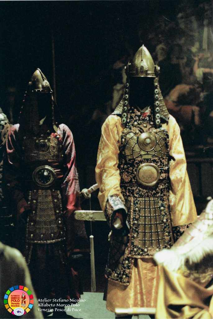 Così dice Stefano Nicolao: “Ancora una volta sono il testimone di una storia e di un’avventura eccezionale che è iniziata oltre quarant’anni fa con il colossal televisivo Marco Polo a cui ho collaborato per tagliare e cucire a mano in Tibet e in Mongolia i costumi della famiglia Polo e delle centinaia di comparse. In condizioni climatiche difficili siamo riusciti anche a costruire un lungo ponte di corda. I Paesi coinvolti sono stati 32″. Questa volta, Nicolao, ha deciso di donare parte del suo tempo e della sua straordinaria esperienza ai piccoli costumisti veneziani che l’hanno accolto, insieme alle insegnanti, con grande entusiasmo e tante domande. Incantati dalle immagini e dai racconti vissuti in terra d’Oriente i bambini hanno imparato termini nuovi come il camauro (cappuccio maschile) o la pazienza (abito senza maniche femminile). Qualche alunno ha fatto da modello, tutti gli hanno chiesto l’autografo.