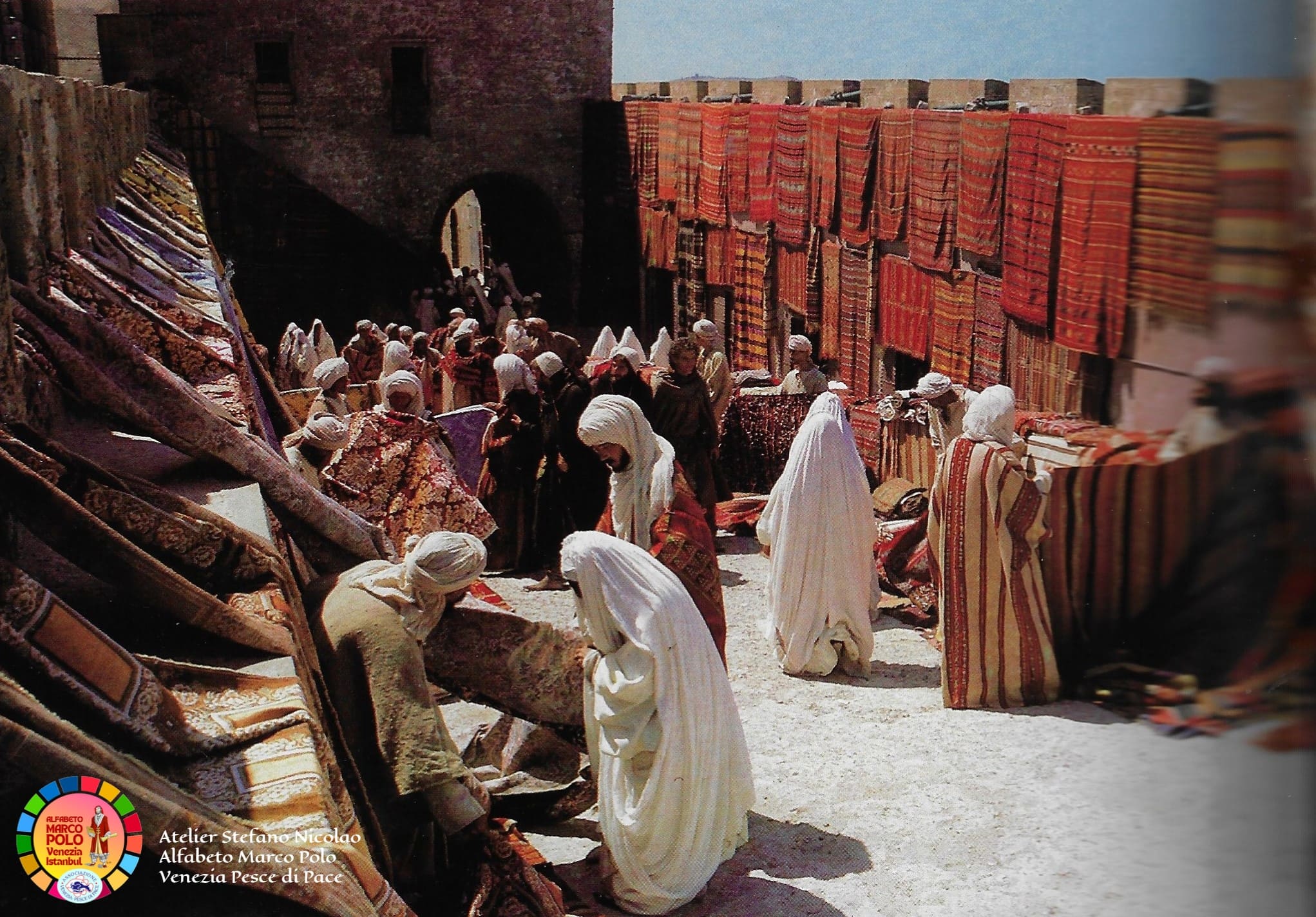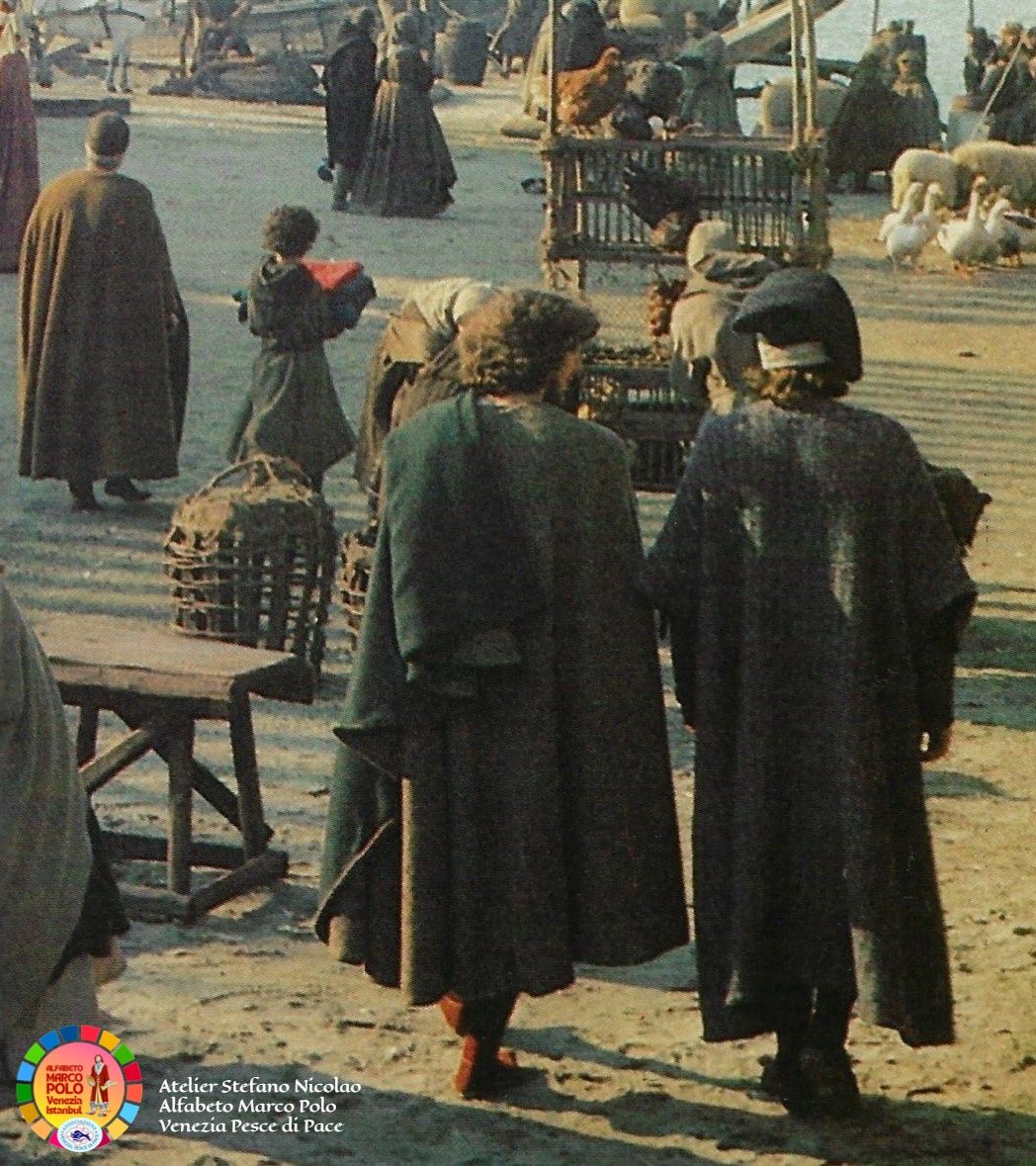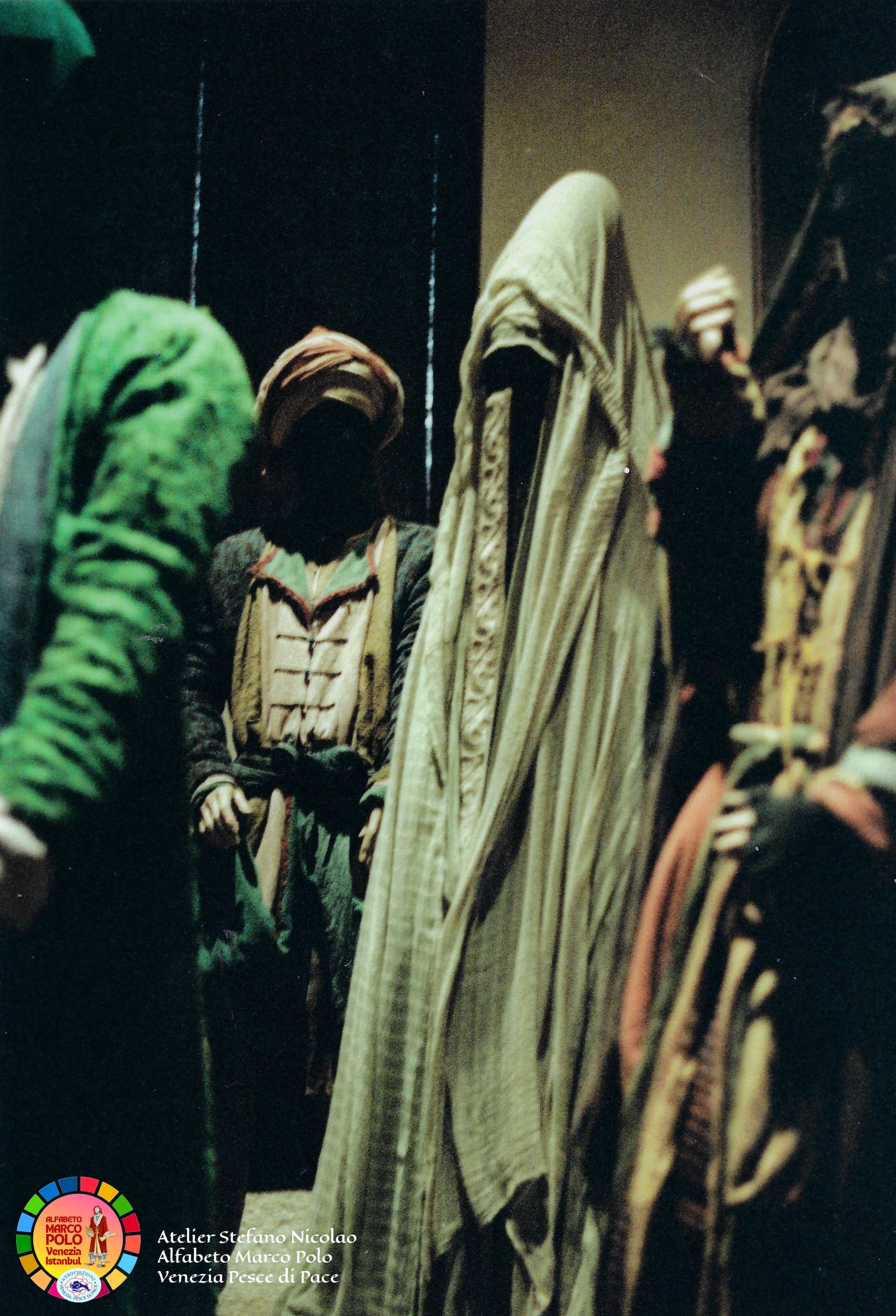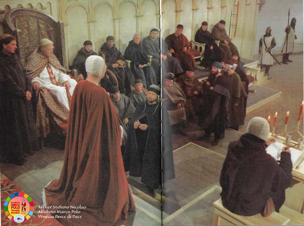 Così dice Stefano Nicolao: “Ancora una volta sono il testimone di una storia e di un’avventura eccezionale che è iniziata oltre quarant’anni fa con il colossal televisivo Marco Polo a cui ho collaborato per tagliare e cucire a mano in Tibet e in Mongolia i costumi della famiglia Polo e delle centinaia di comparse. In condizioni climatiche difficili siamo riusciti anche a costruire un lungo ponte di corda. I Paesi coinvolti sono stati 32″. Questa volta, Nicolao, ha deciso di donare parte del suo tempo e della sua straordinaria esperienza ai piccoli costumisti veneziani che l’hanno accolto, insieme alle insegnanti, con grande entusiasmo e tante domande. Incantati dalle immagini e dai racconti vissuti in terra d’Oriente i bambini hanno imparato termini nuovi come il camauro (cappuccio maschile) o la pazienza (abito senza maniche femminile). Qualche alunno ha fatto da modello, tutti gli hanno chiesto l’autografo.